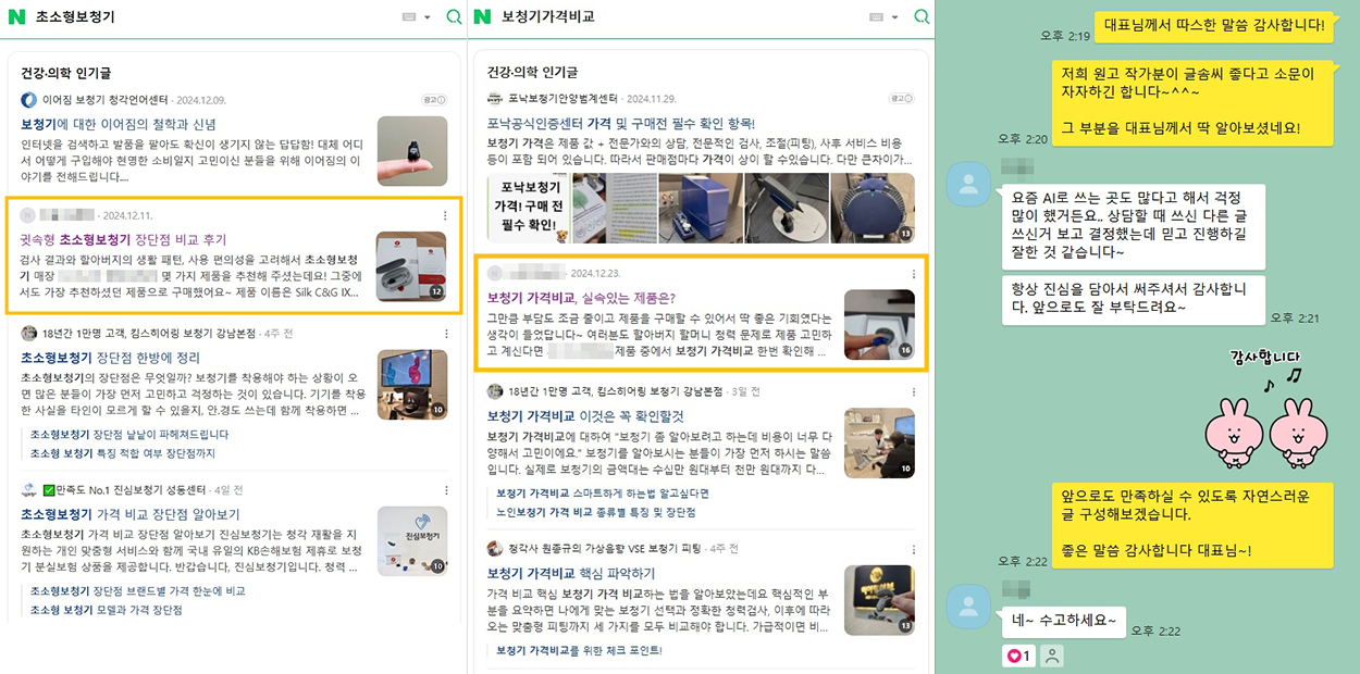 단순한 후기성 글이 아닌전문 카피라이터가 직접 작성하는구매로 이어지는 신뢰높은 리뷰