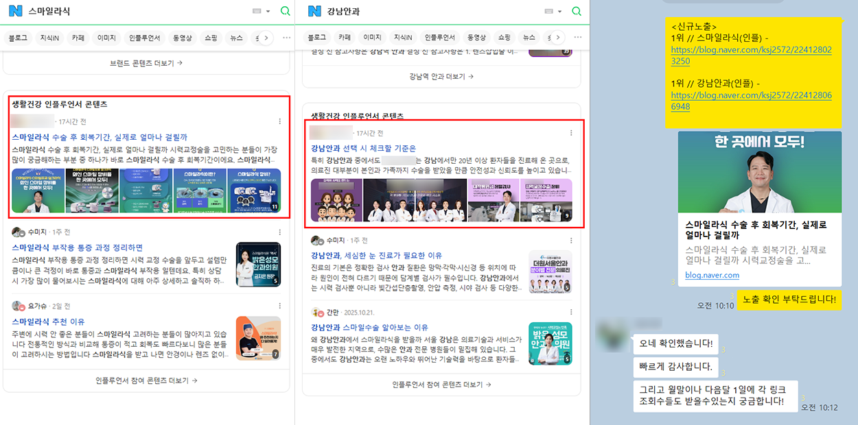 경쟁률이 매우 심한 서울 강남 지역 병·의원 메인 키워드 타겟도단기간 안에 1위 노출까지!