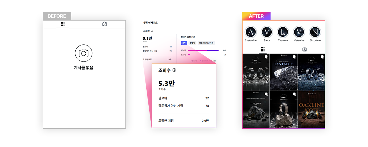 감각적인 피드 디자인은 브랜드의 첫인상을 결정짓게 되며, 통일된 톤앤무드는 소비자로 하여금 신뢰와 전문성을 각인시킵니다.